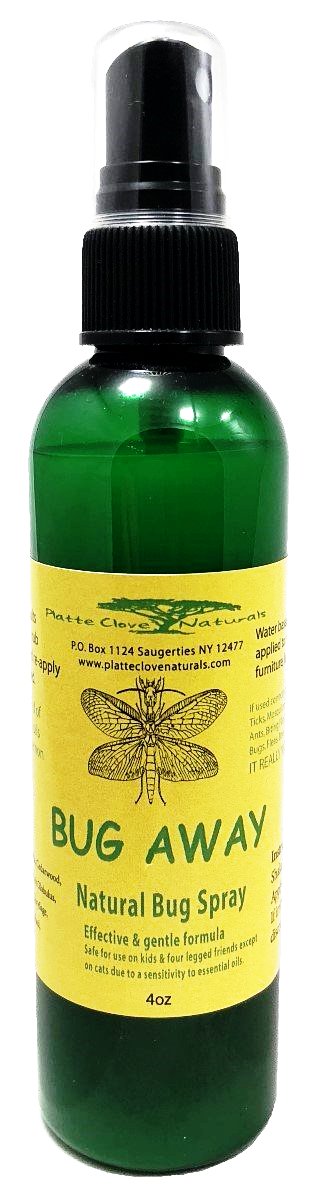 Platte Clove Naturals Bug Away is a water-based blend of 13 different essential oils. Bug Away will keep mosquitoes, black flies, ticks, ants, mayflies and many other bloodsuckers away!