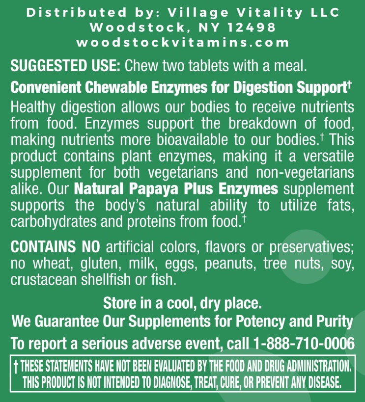 By taking Woodstock Vitamins Chewable Papaya Plus Enzymes you will support your body’s natural ability to utilize carbohydrates and proteins from food.