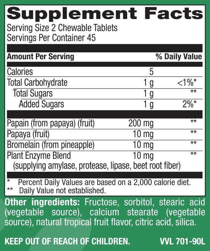 Chewable Natural Papaya – Natural Tropical Fruit Flavor – 90 Tablets