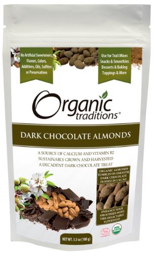 Organic Traditions Dark Chocolate Covered Almonds combine two delicious foods into a healthy and nutritious snack.