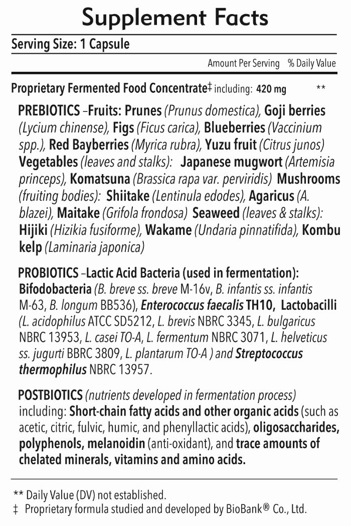 - POSTbiotics– pH balancing organic acids along with naturally occurring vitamins, minerals, enzymes, and amino acids to support digestive function and whole health*