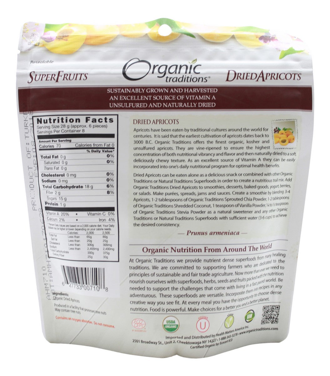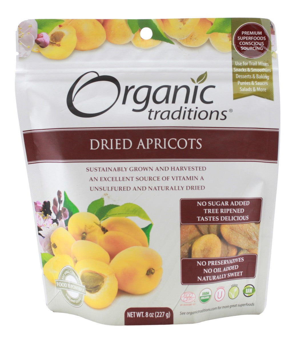 Organic Traditions Dried Apricots are sustainably grown and harvested. Dried Apricots can be eaten alone as a delicious snack. They’re vine-ripened and naturally dried to ensure the highest concentration of both nutritional vibrancy & flavour. A tasty source of fibre!
