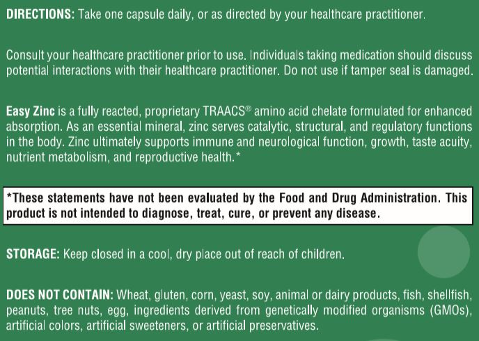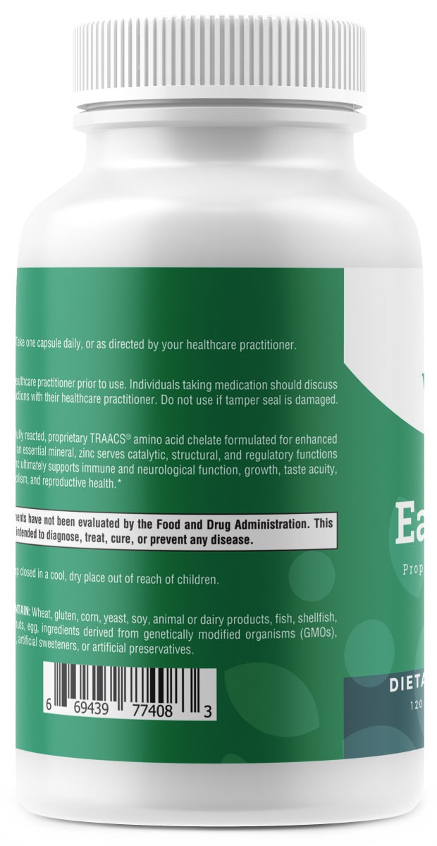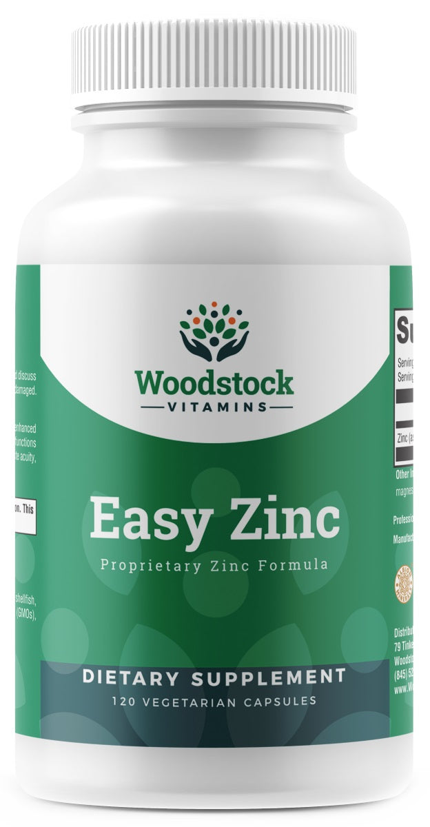 Woodstock Vitamins Easy Zinc is a fully reacted, proprietary TRAACS amino acid chelate formulated for enhanced absorption.
