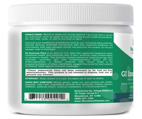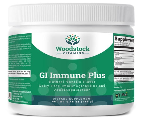 Woodstock Vitamins GI Immune Plus is an easy-to-mix, dairy-free supplement designed to support intestinal health and immunity and in turn positively impact multiple aspects of systemic health.