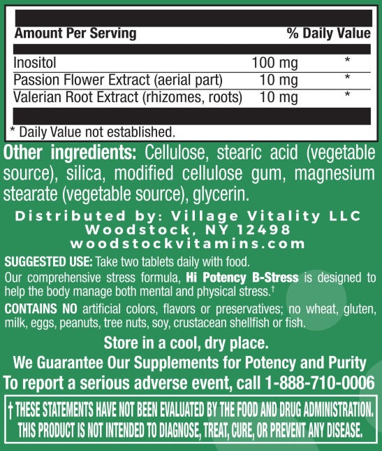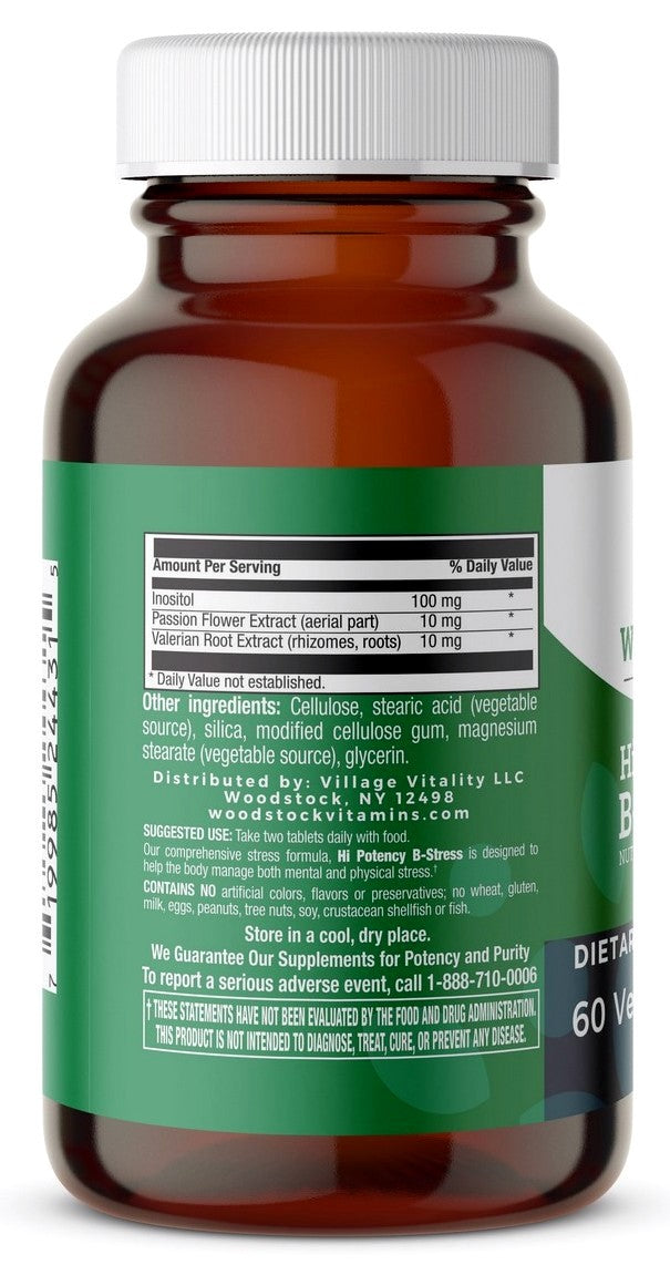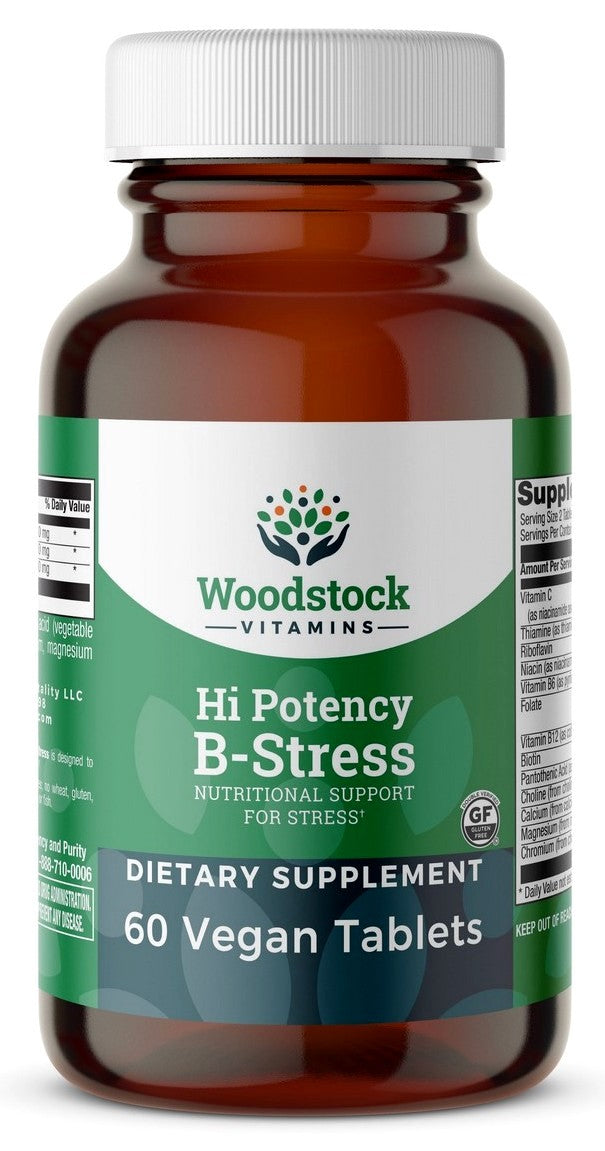 Woodstock Vitamins comprehensive stress formula Hi Potency B-Stress is designed to help the body manage both mental and physical stress.