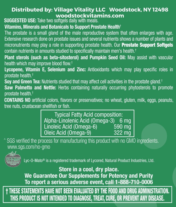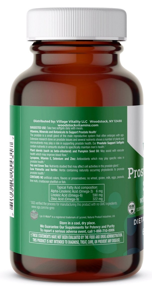 Woodstock Vitamins Prostate Support contains nutrients in amounts studied to specifically maintain men’s health.