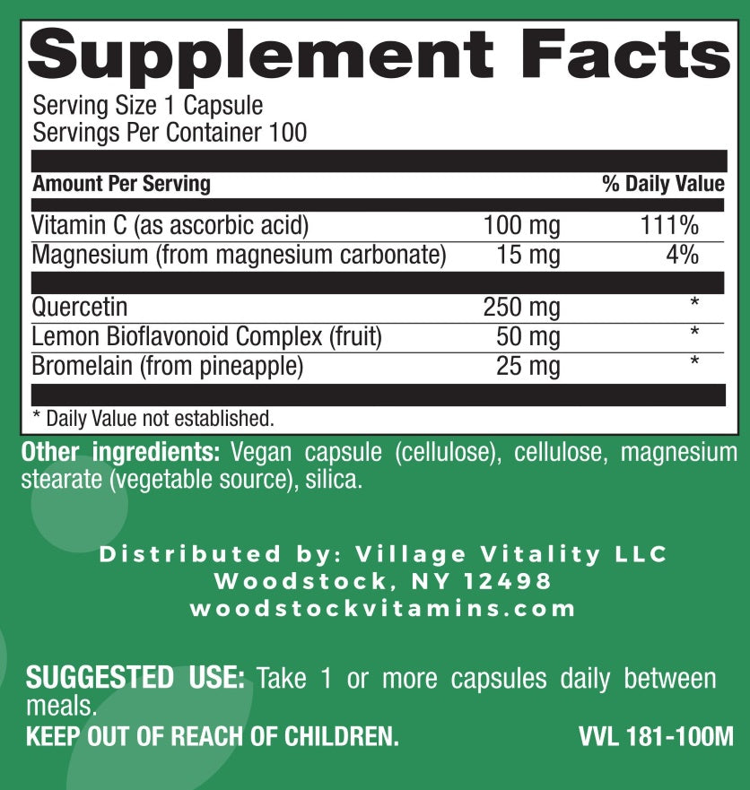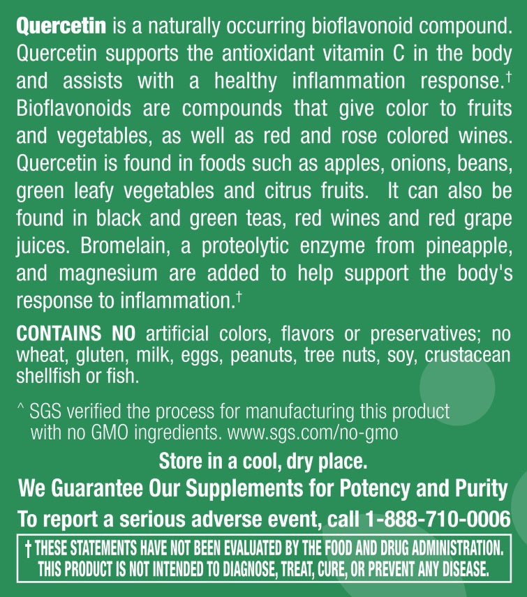 - A unique combination of Quercetin, bromelain, and other bioflavonoids