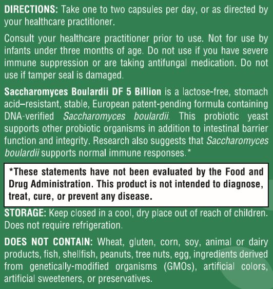 This probiotic yeast supports other probiotic organisms in addition to intestinal barrier function and integrity. Research also suggests that Saccharomyces boulardii supports normal immune responses.