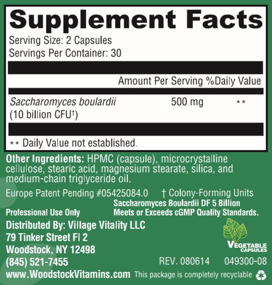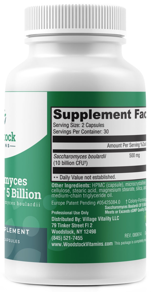 Woodstock Vitamins Saccharomyces Boulardii is a lactose-free, stomach acid–resistant, stable, European patent-pending formula containing DNA-verified Saccharomyces boulardii.