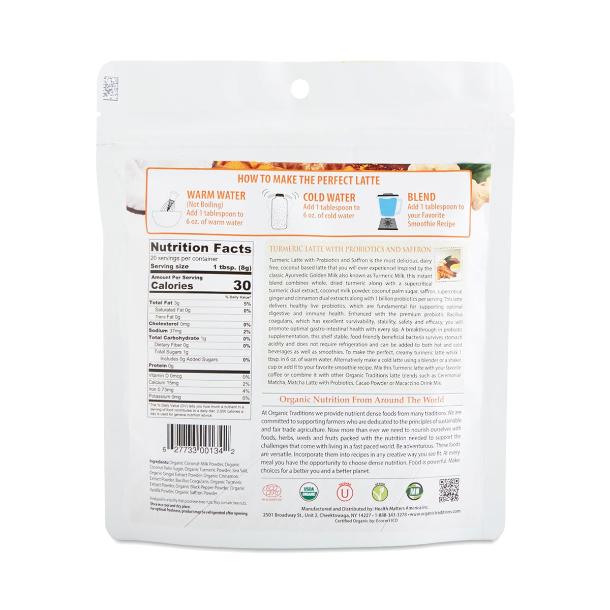 Organic Traditions Turmeric Latte with Probiotics and Saffron is the most delicious, dairy-free, coconut-based latte that you will ever experience!