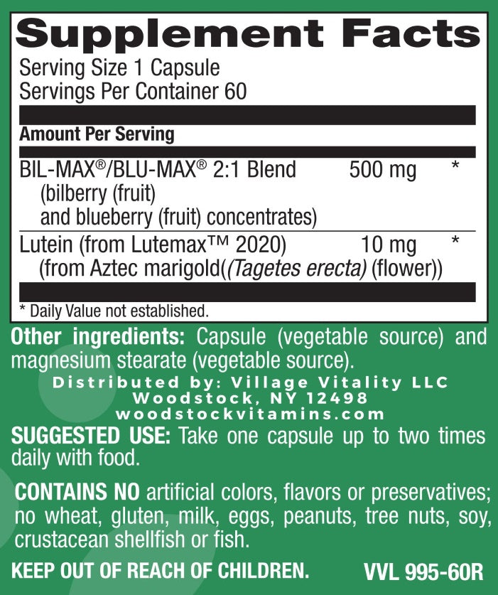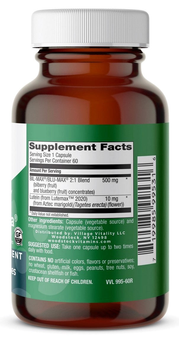 Woodstock Vitamins Ultimate Eye Formula contains Lutein, which along with its isomer zeaxanthin are powerful antioxidants from the carotenoid family that promote eye health. Bilberries, native to northern Europe, are a source of anthocyanins and other nutrients that have been used for centuries to support eye and vision health.