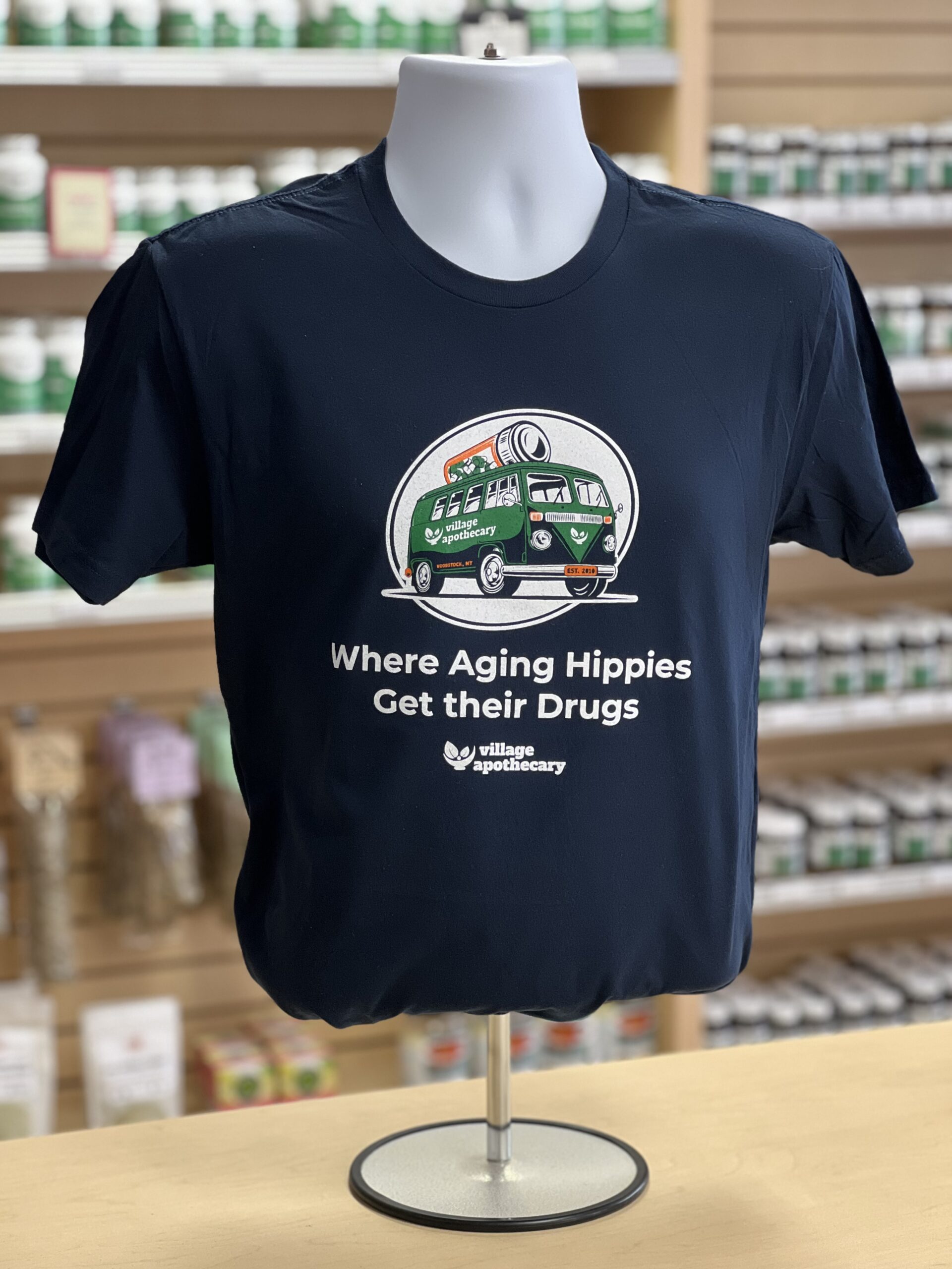 The crowd favorite, official T-Shirt of Village Apothecary: Dr. Neal’s pharmacy practice in Woodstock, NY.