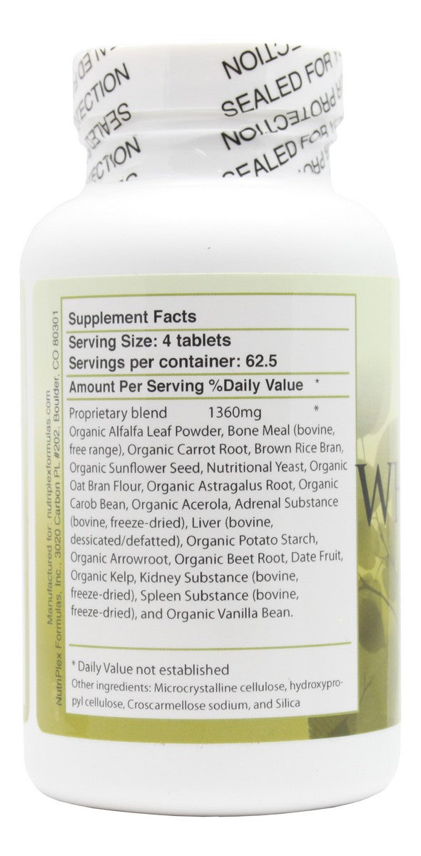 - Our Whole Food Complex formula provides raw whole food nutrition from 20 different vegetables, glandular, fruits, seeds and grains in a convenient tablet form.