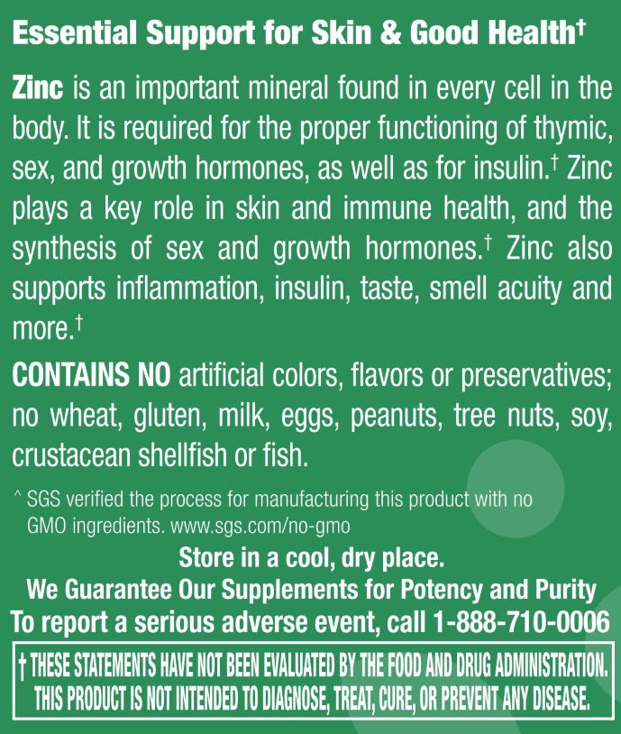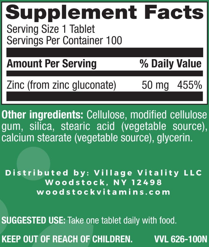 Woodstock Vitamins zinc also helps maintain normal taste and smell acuity and promotes healthy skin. An adequate intake of zinc is essential for good health.