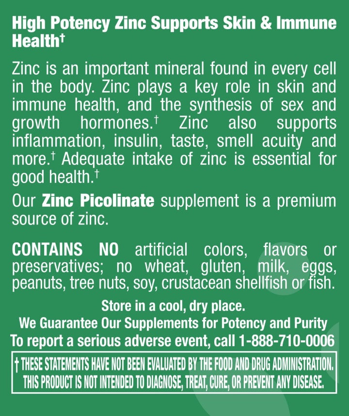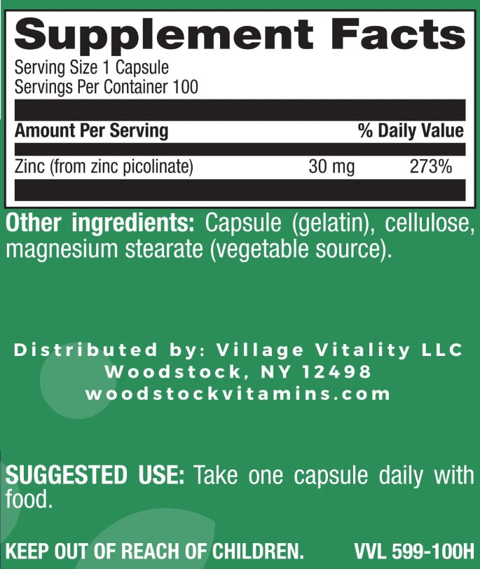 Woodstock Vitamins zinc also helps maintain normal taste and smell acuity and promotes healthy skin. An adequate intake of zinc is essential for good health.
