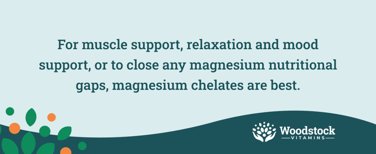 - If you’re looking for any benefit outside of your GI tract, the chelate form is best.